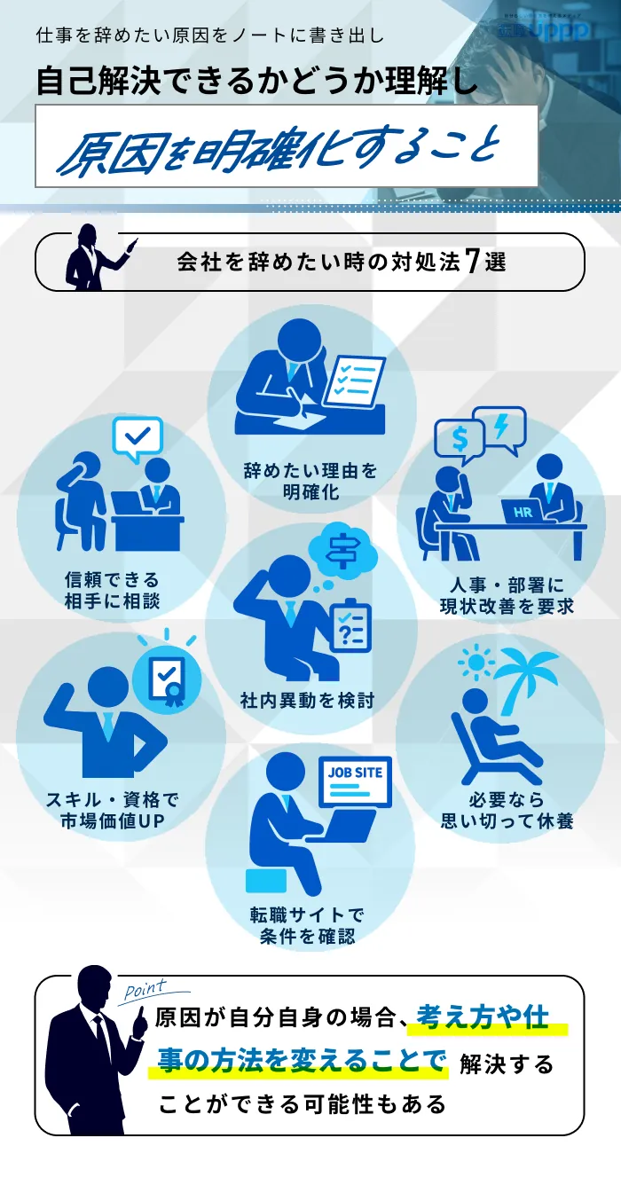 仕事を辞める前の対処法や、仕事を辞める判断基準についても解説しています。